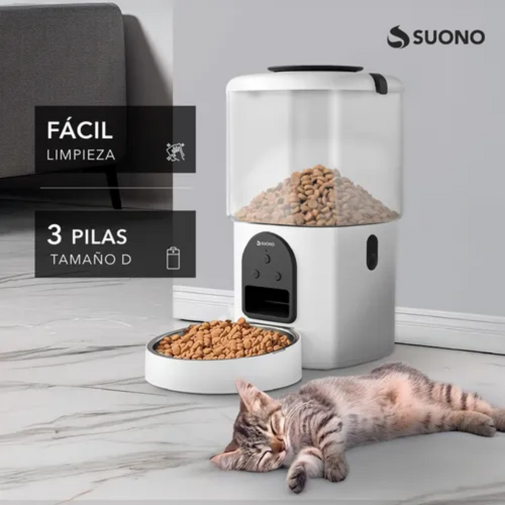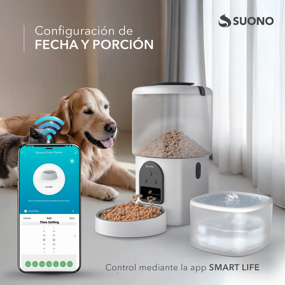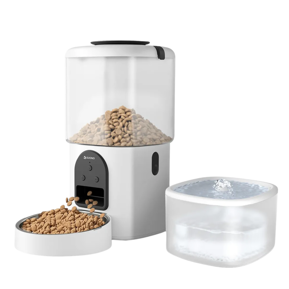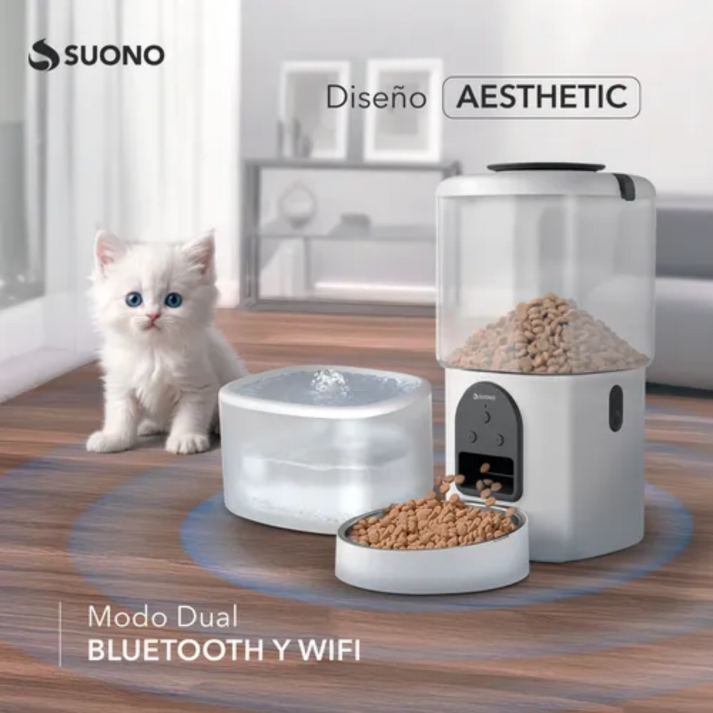 Este sistema 2 en 1 de Suono combina tecnología y practicidad para brindar un cuidado completo a tu mascota, permitiéndote supervisar y gestionar su alimentación e hidratación de forma remota y eficiente.