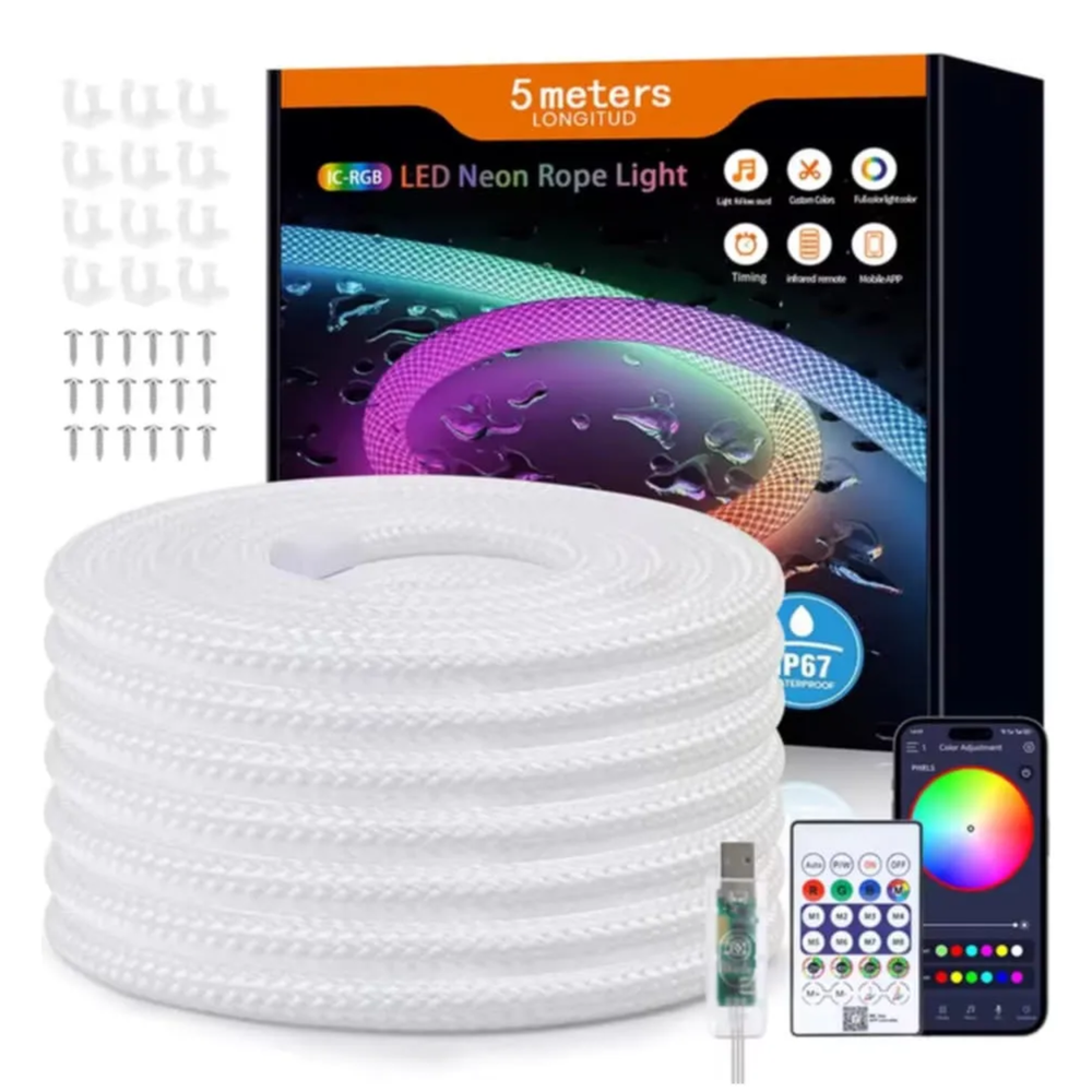 1 tira de luz LED de neón. 1 controlador USB Bluetooth 1 mando a distancia de 24 teclas 1 x juego de tornillos de hebilla