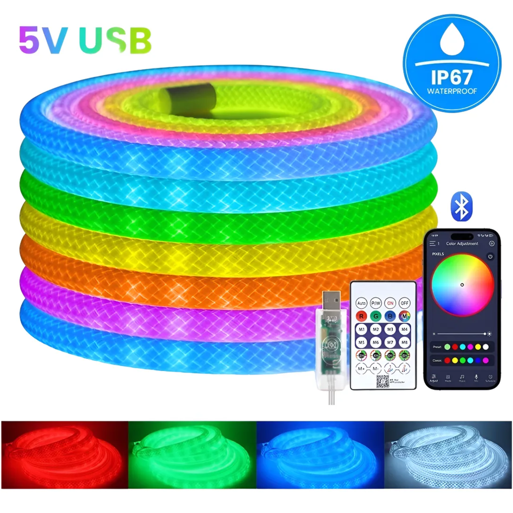 Su grado de protección IP67 garantiza resistencia al agua y a la intemperie, lo que la hace ideal para su uso tanto en interiores como en exteriores. La tecnología addressable permite el control individual de cada LED, lo que abre un abanico de posibilidades creativas para personalizar tus escenas lumínicas.