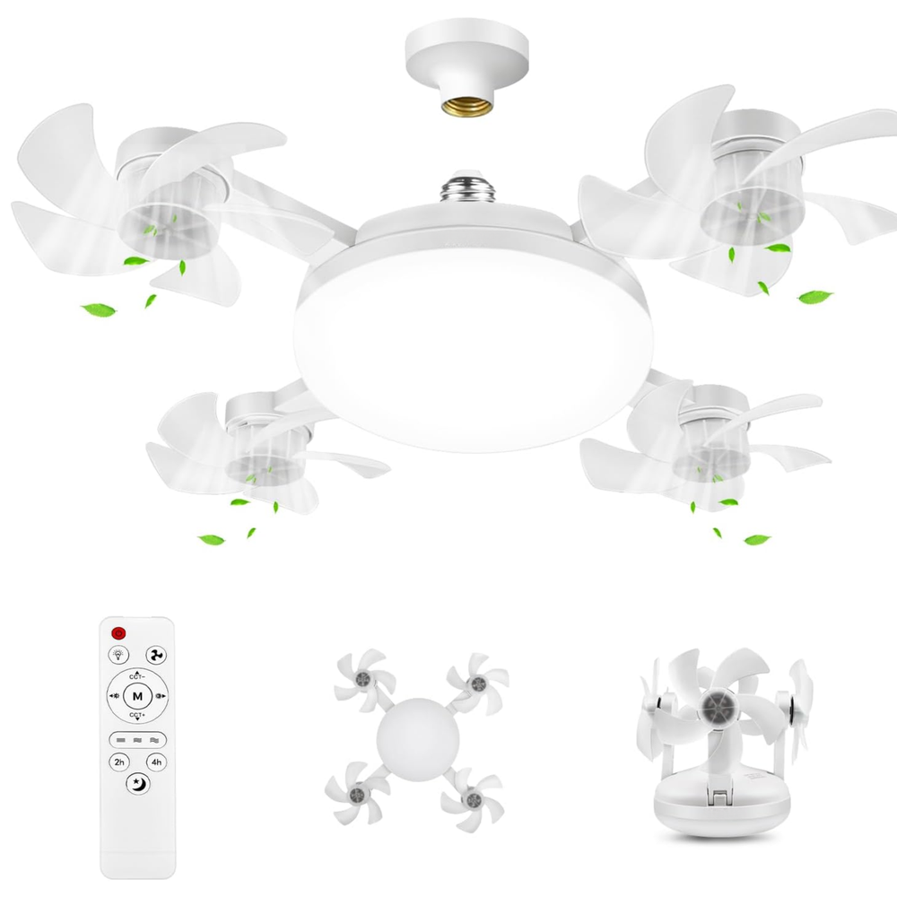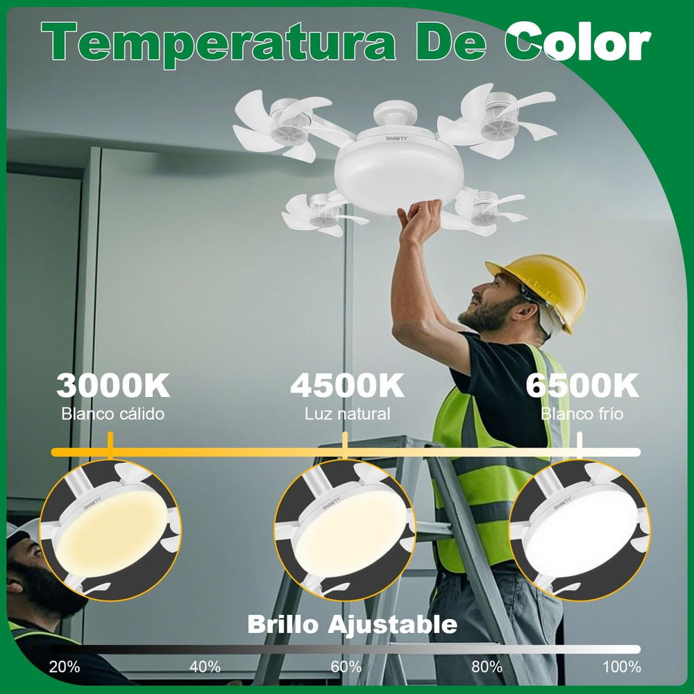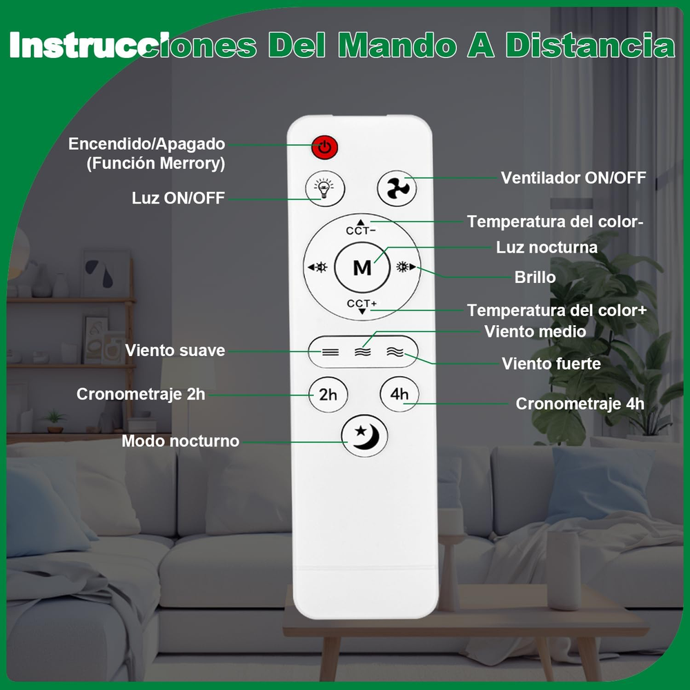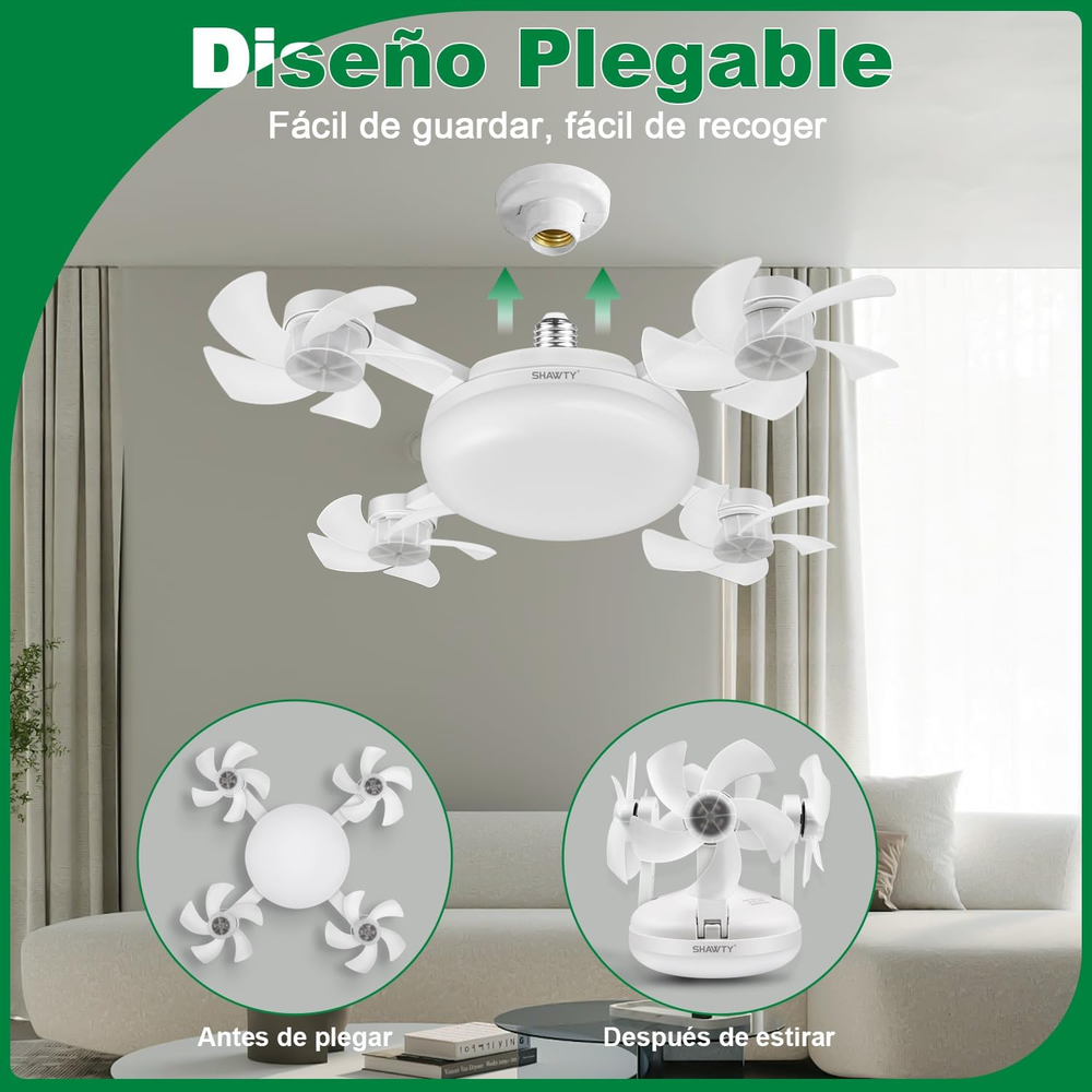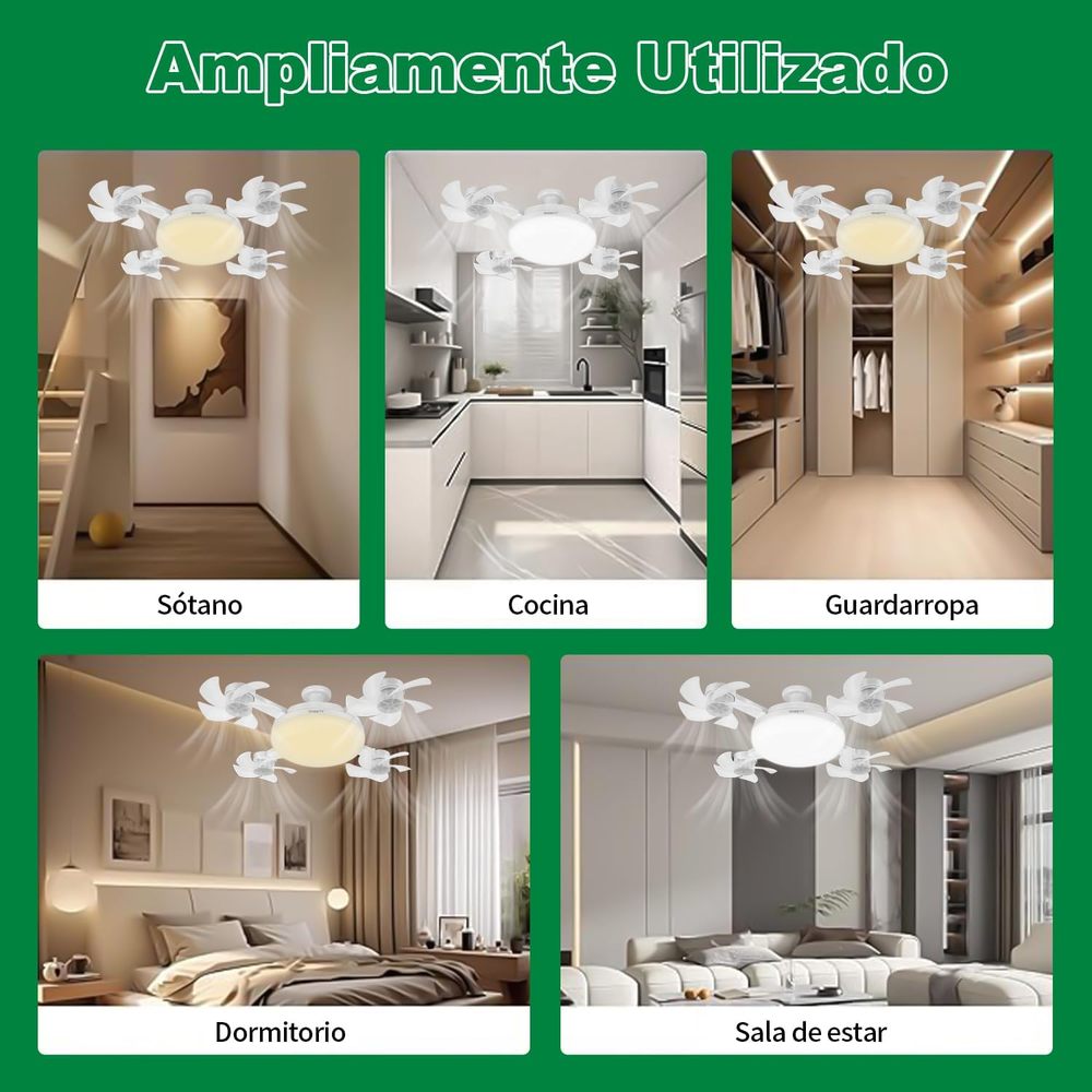 Ventilador de techo versátil con luz: Este ventilador de techo con control remoto, funcional y elegante, cuenta con una luz LED que proporciona iluminación y circulación de aire en un diseño elegante. Compatibilidad con enchufes E27: Diseñado para adaptarse a enchufes E27 estándar, este ventilador de techo es fácil de instalar y excelente para actualizar sus artefactos de iluminación existentes sin la necesidad de cableado adicional. Iluminación de atenuación: disfrute de tres configuraciones de temperatura de color (3000K/4000K/6500K) con capacidades de atenuación continua, lo que le permite crear un gran ambiente en cualquier habitación ajustando la intensidad de la luz para adaptarse a su estado de ánimo y actividad. Velocidad del viento ajustable: experimente la comodidad que necesita con un ajuste de viento continuo, lo que le permite controlar la velocidad del ventilador con precisión para el flujo de aire en su espacio interior, como dormitorios o salas de estar. Ideal para diversos entornos interiores: Perfectamente adecuado para usar en dormitorios, salas de estar o garajes, este ventilador de techo con luz regulable mejora tanto la funcionalidad como el atractivo estético en cualquier entorno interior.