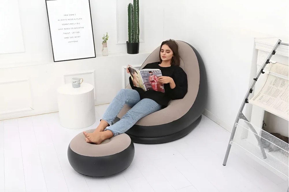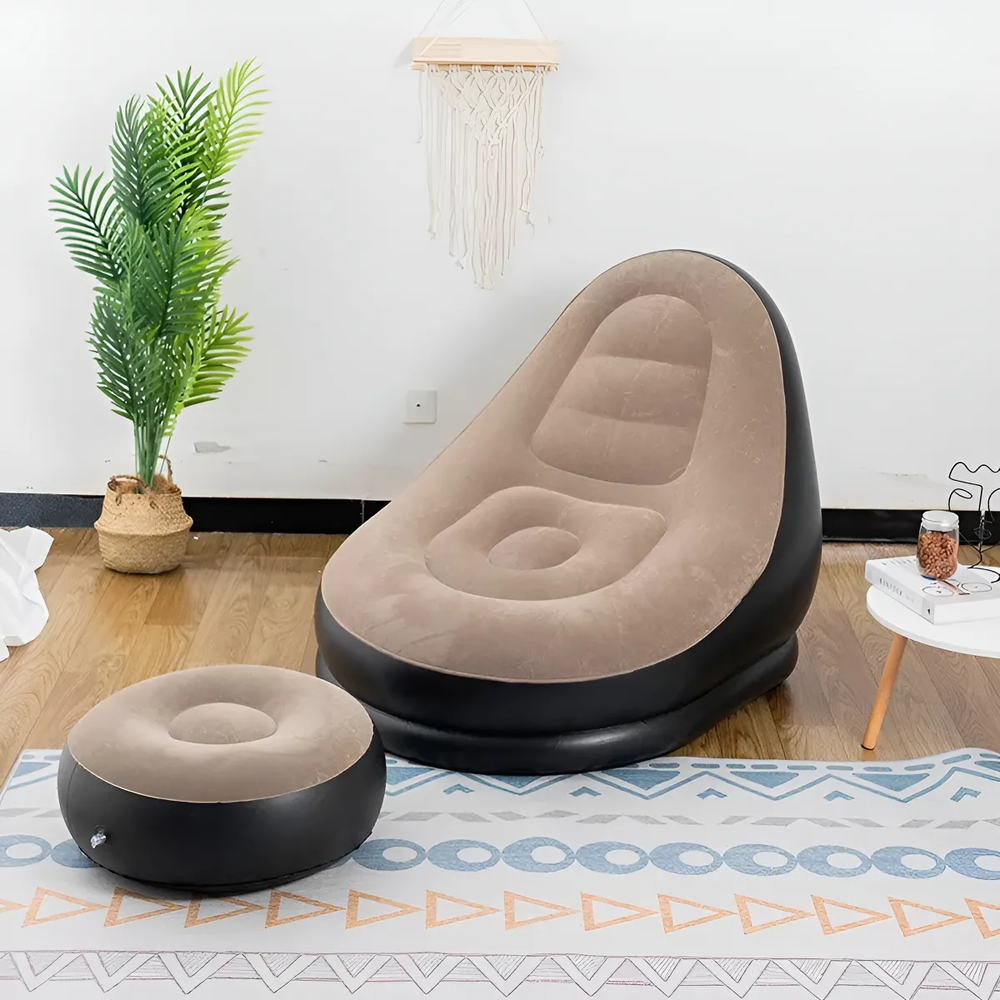 Simple y conveniente: nuestro sofá inflable es el tamaño portátil perfecto cuando se pliega, por lo que es fácil de transportar y almacenar cuando no está en uso. También ofrecemos una bomba de aire para que pueda comenzar un día cómodo, relajado y relajante sin preocupaciones.