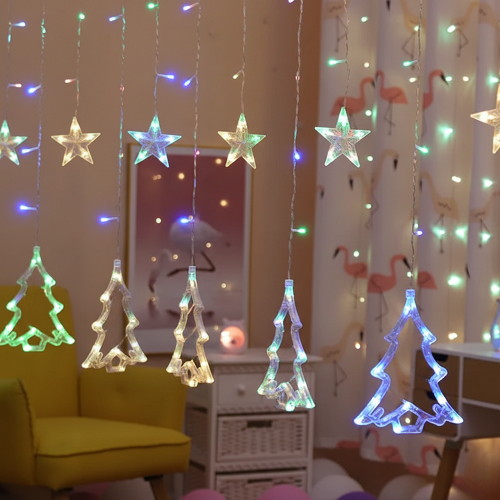 LUCES LLUVIA DE NAVIDAD ARBBOLITOS + ESTRELLA 3M MULTICOLORES X1