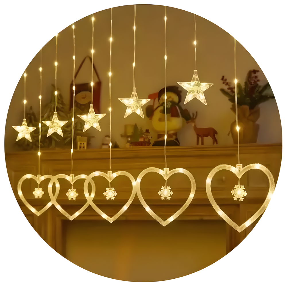 LUCES LLUVIA CORAZON Y ESTRELLA 3M CALIDA X1