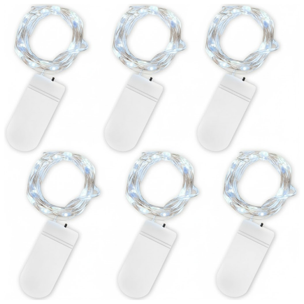 PACK DE 12 LUCES ALAMBRE BLANCA FRIA EN BOTON X1