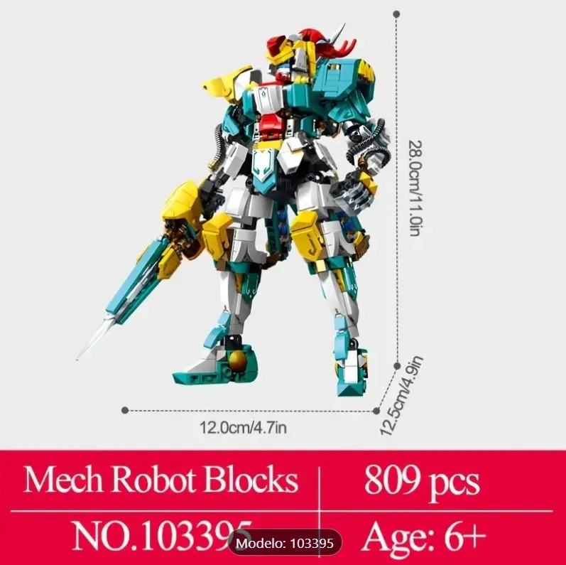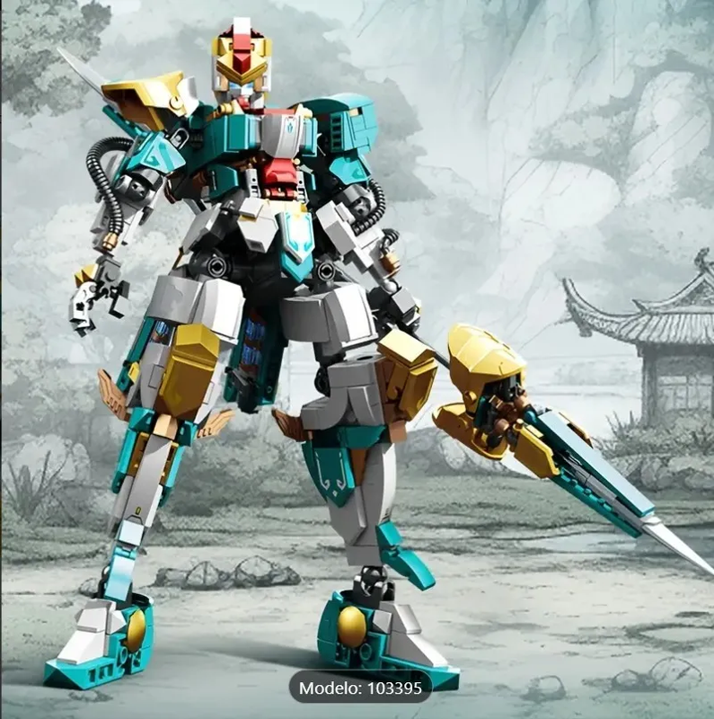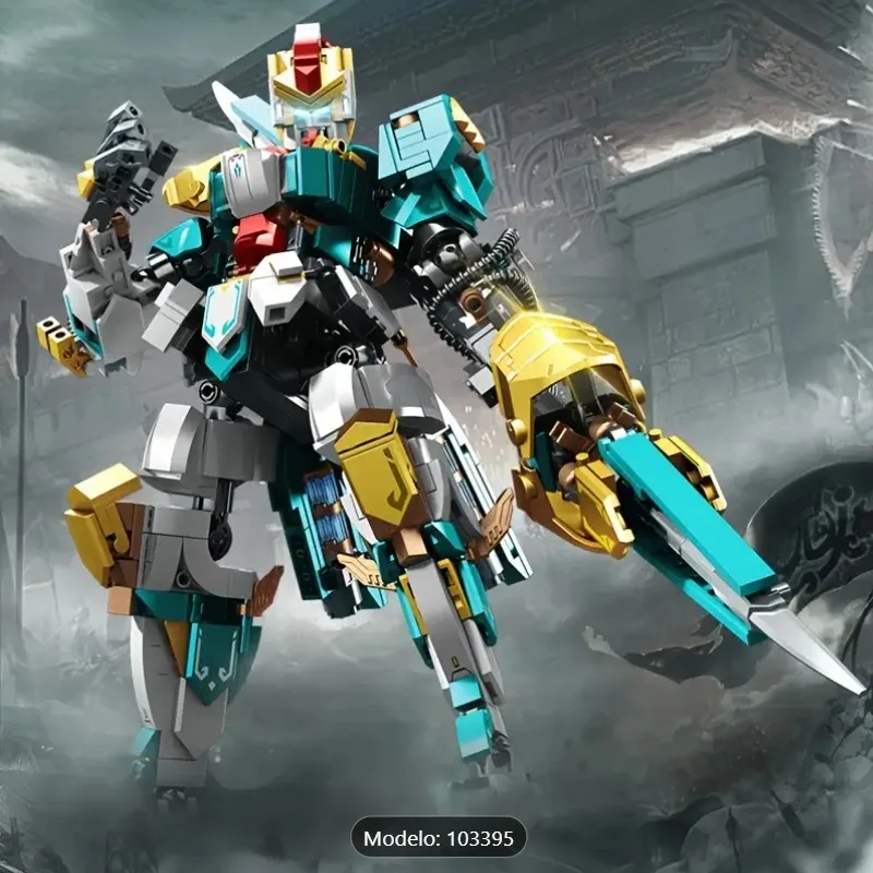 ¡Conviértete en el arquitecto de la batalla con el impresionante robot armable Ma Chao, parte de la serie legendaria Five Tiger Generals! Este poderoso mecha samurái está listo para la acción con una armadura blanca y turquesa, detalles de fuego y una espada luminosa que lo hacen destacar entre todos los modelos.