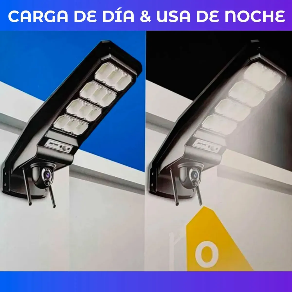 La cámara WIFI con lámpara y panel solar es la solución ideal para quienes buscan seguridad y comodidad en un solo dispositivo. Diseñada para exteriores, esta cámara de vigilancia ofrece una calidad de resolución HD, permitiendo una visualización clara y nítida de cualquier actividad en su campo de visión. Su conectividad inalámbrica facilita la instalación en cualquier pared, eliminando la necesidad de complicados cables.