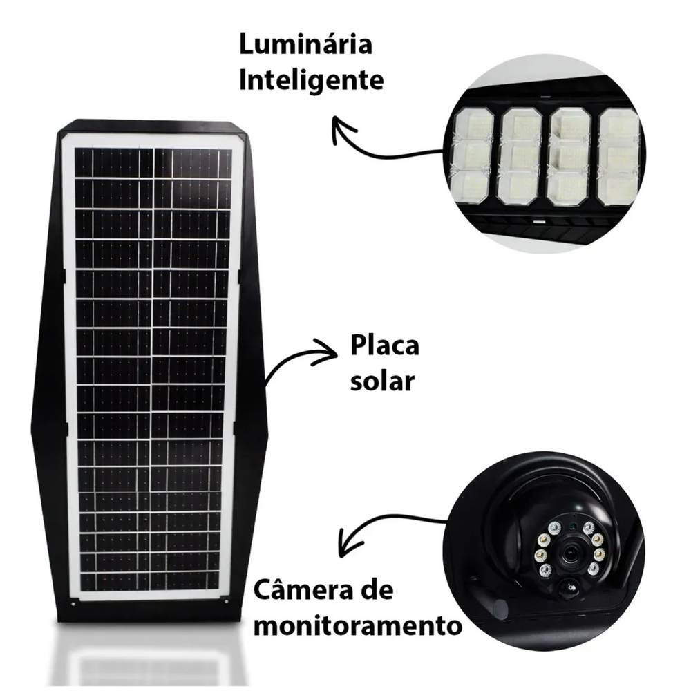 Lente: 3,6 mm a f2,4 Ángulo de visión horizontal: 56° Ángulo de visión vertical: 30° Ángulo del haz: 100° Ajuste del ángulo: 180° Visión nocturna a todo color Visión nocturna por infrarrojos Imagen HD Intercomunicador bidireccional Conexión inalámbrica Detector de movimiento Control PTZ Almacenamiento en tarjeta SD: hasta 128 GB (no incluida) Ancho de tolva de canal: admite 40 MHz Panel solar batería de litio Tiempo de carga: 9-10 horas a plena luz del sol. Tiempo de funcionamiento: 12 horas Alcance de iluminación: hasta 30 metros Resistente al agua: IP66 Temperatura de color: 6500K Potencia de la Lampara: 400W Mando a distancia Temperatura de funcionamiento: -10 °C - 50 °C Humedad de funcionamiento: <95% Consumo de energía: 3 W máx. Material de construcción: Construcción ABS Dimensiones: 60,7 x 26,8 x 7 cm. El proyector solar tiene 3 configuraciones diferentes: