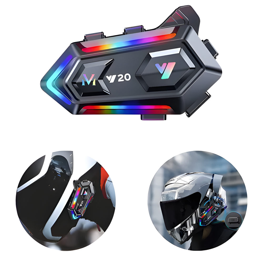 AURICULARES PARA CASCO DE MOTO V20 CON LUZ RGB X1