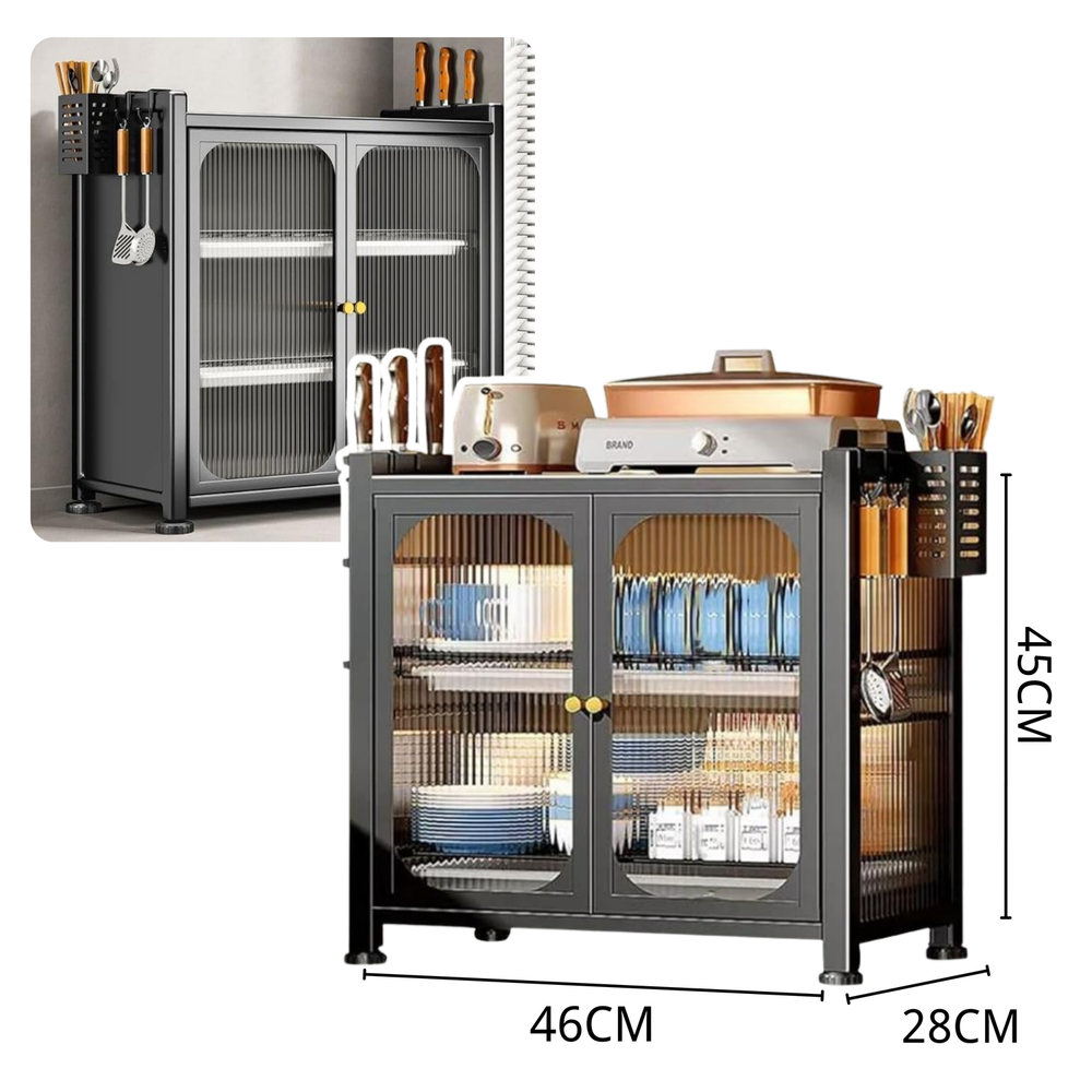 ESTANTE METAL CON PUERTA PARA MESA DE COCINA NEGRO X1