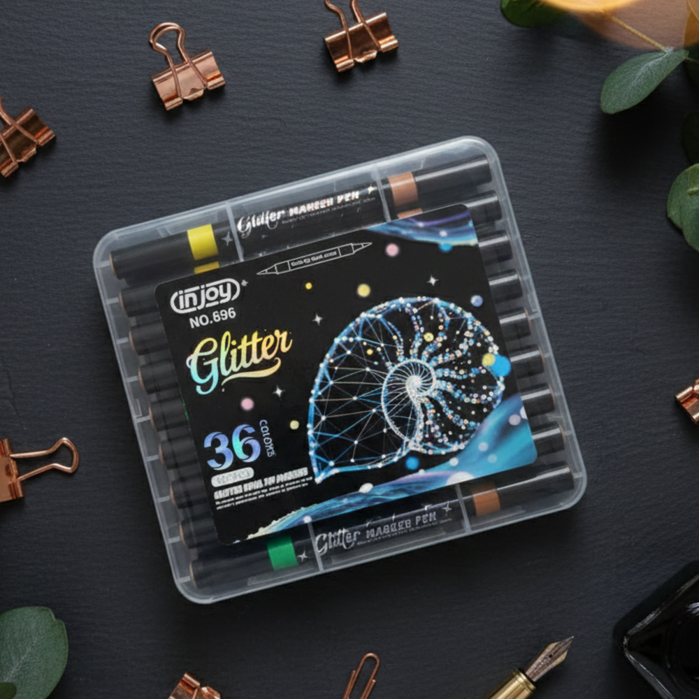PACK DE 18 RESALTADOR CON GLITTER DOBLE PUNTA 36 COLORES EN 1 X1