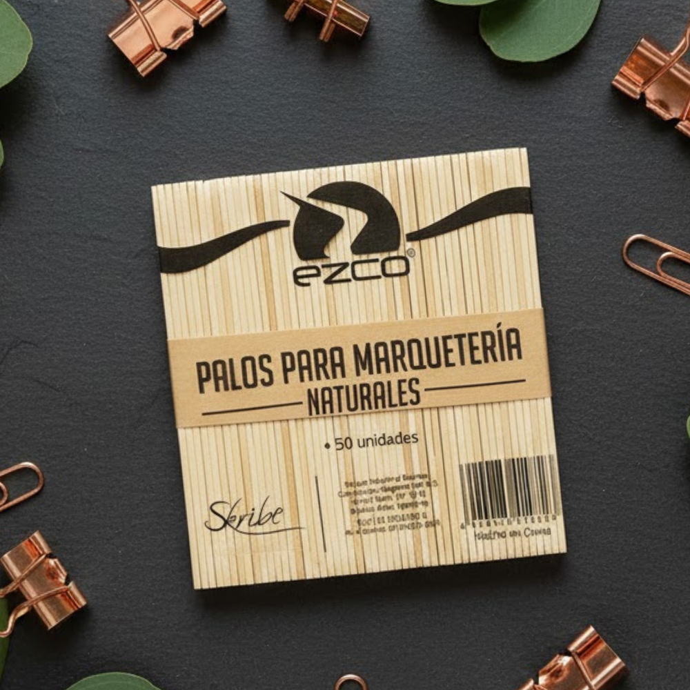 PACK DE 50 PALOS PARA MARQUETERIA NATURALES X1