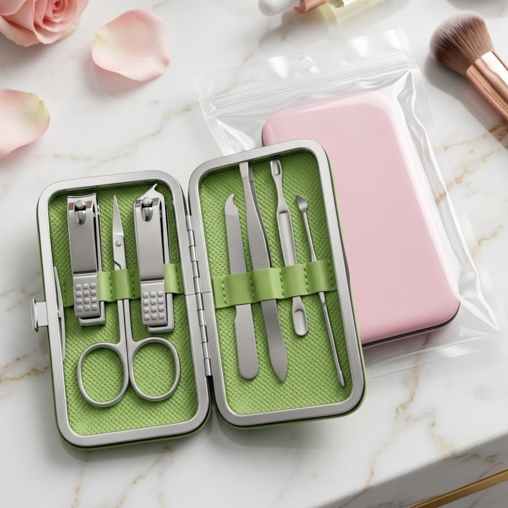 SET DE MANICURA DE 7 PIEZAS CAJA LISO VARIOS COLORES X1