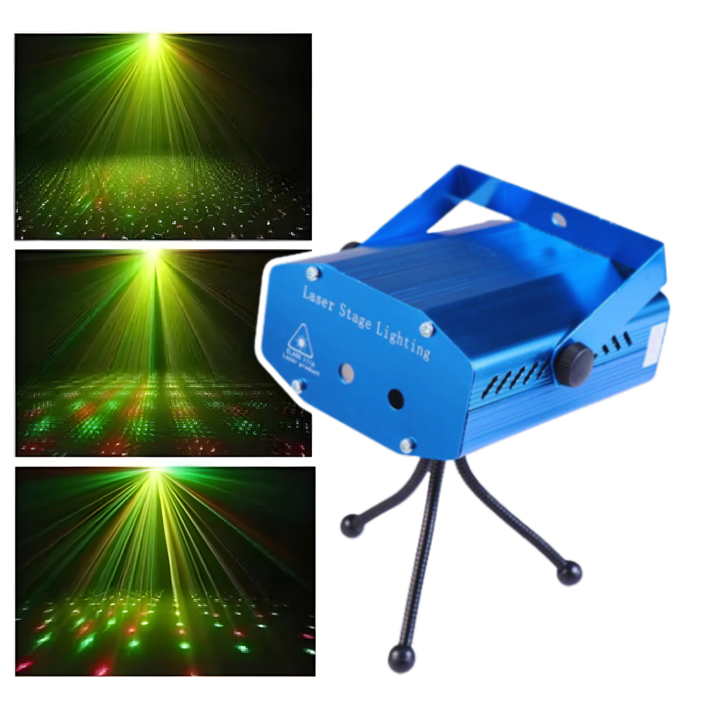 ¡Armá tu propia fiesta en casa con este mini proyector láser! Es compacto, potente y súper fácil de usar. Ideal para darle onda a cualquier evento con efectos de lluvia de puntos y figuras que se mueven al ritmo de la música.