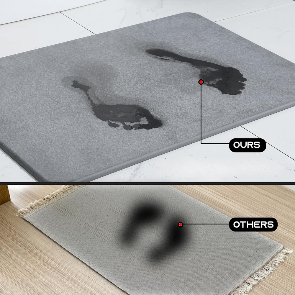 ¡Mantené tu baño siempre seco y elegante! Esta no es una alfombra común; está fabricada con tierra de diatomeas, un material natural de alta tecnología que absorbe el agua en segundos, evitando charcos y humedad en el piso.